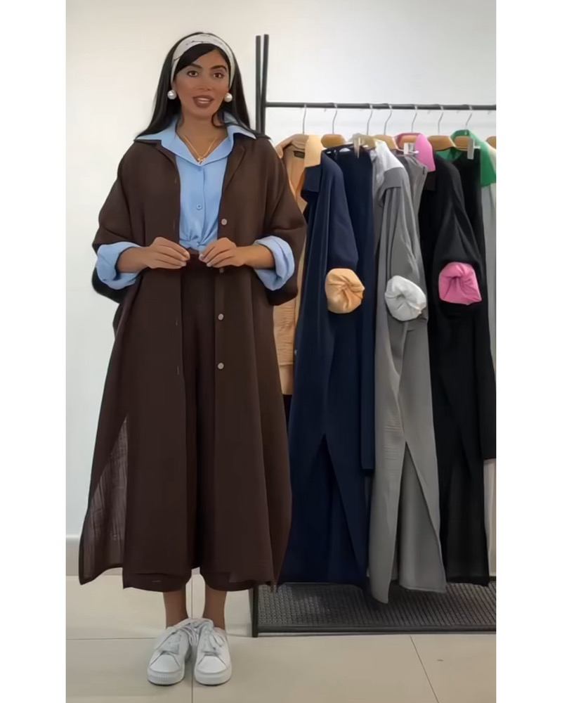ست 3 تکه شلوار و کت و تاپ لنین کد 1027
