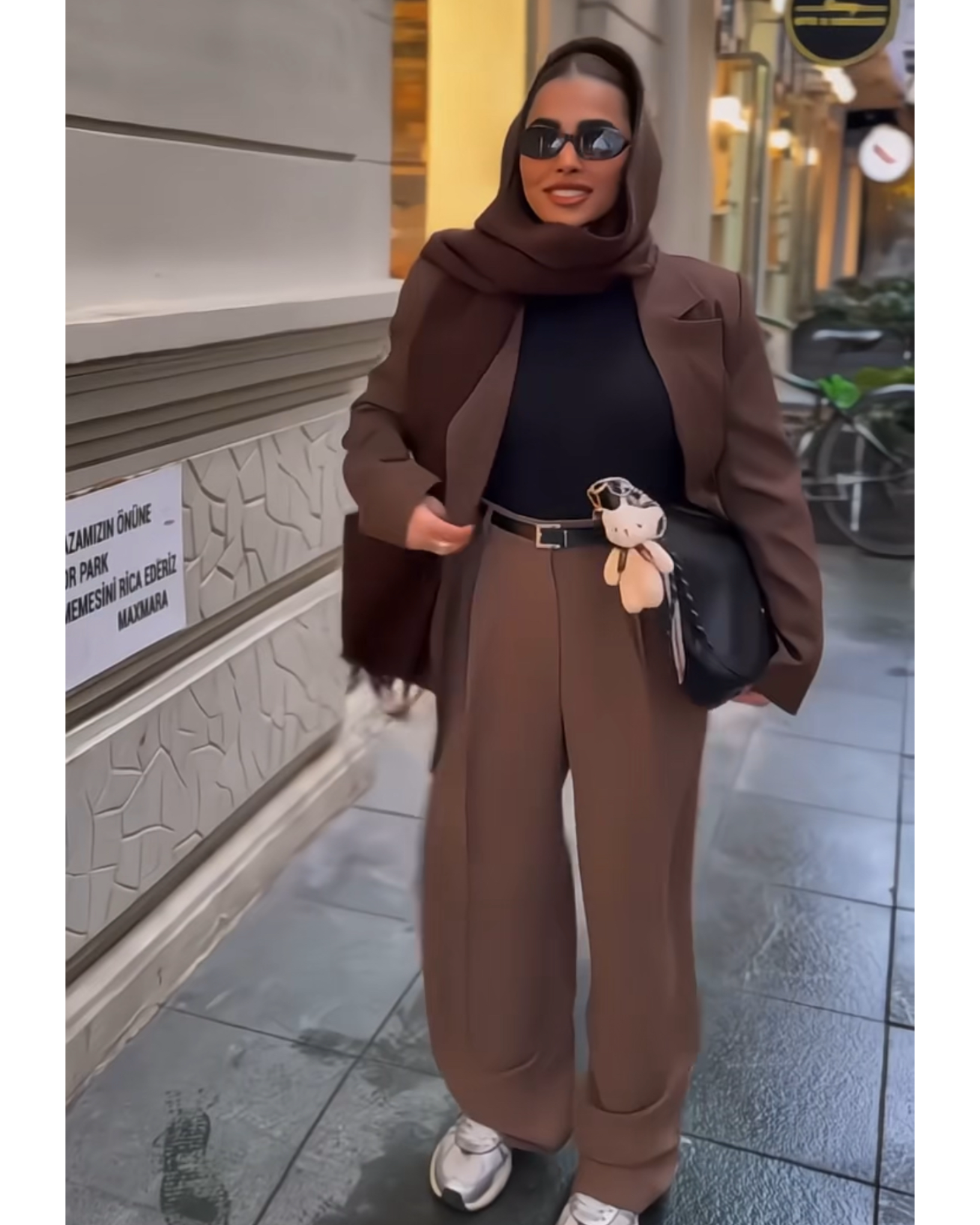 ست 3 تکه شلوار و کت و تاپ لنین کد 1027