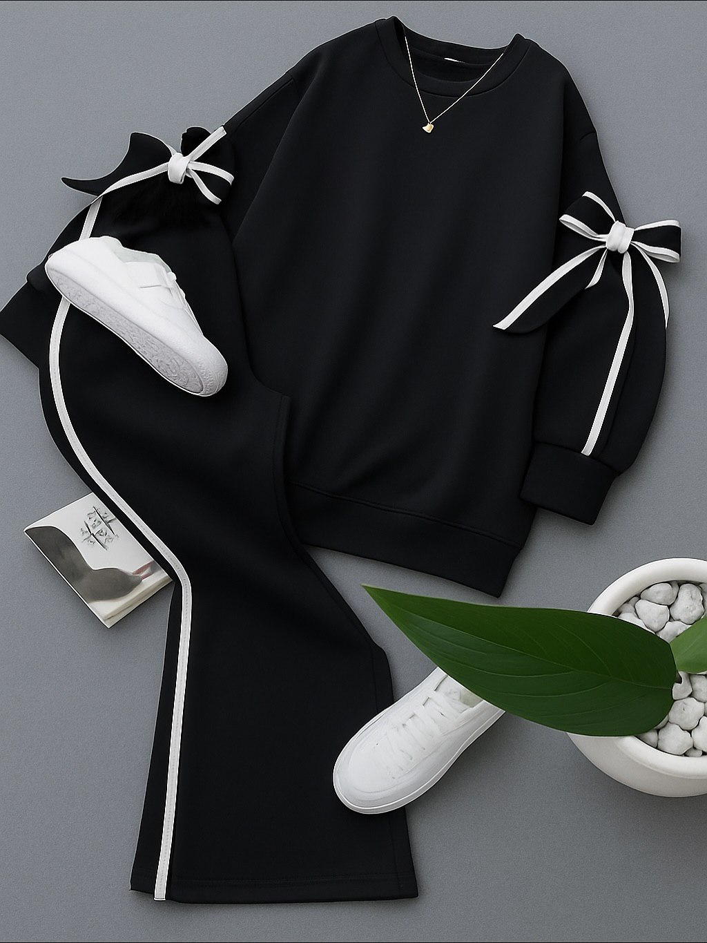 ست دورس و شلوار خط دار پاپیونی کد 6227