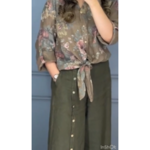 ست شومیز و اورال گل دار جنس لنین کد 1046